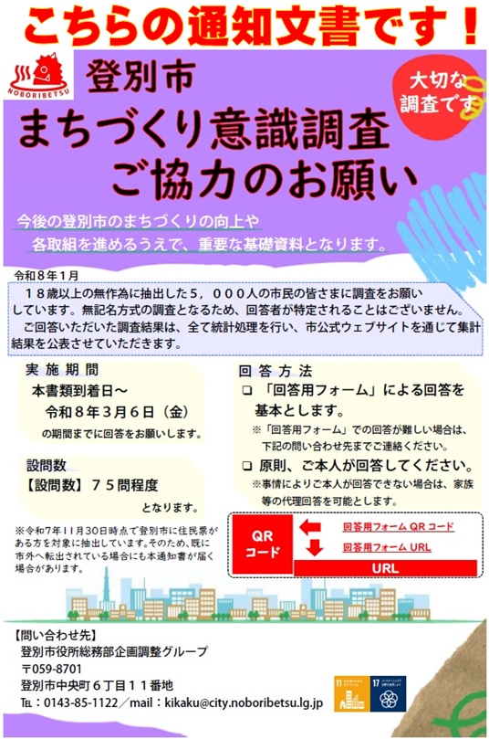 ※令和7年11月30日時点で登別市に住民票がある方を対象に通知文書を送付しているため、既に市外へ転出されている場合等でも通知文書が届く場合があります。